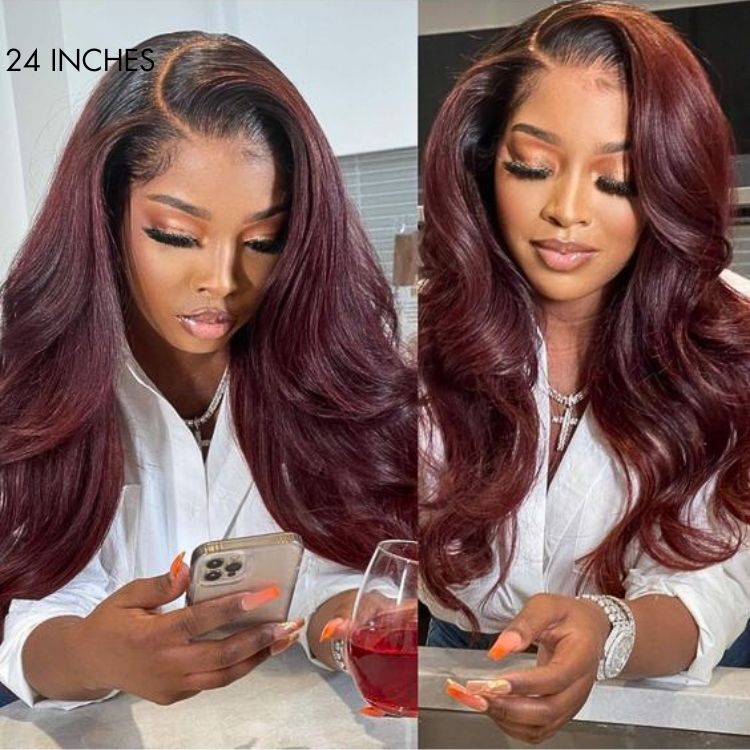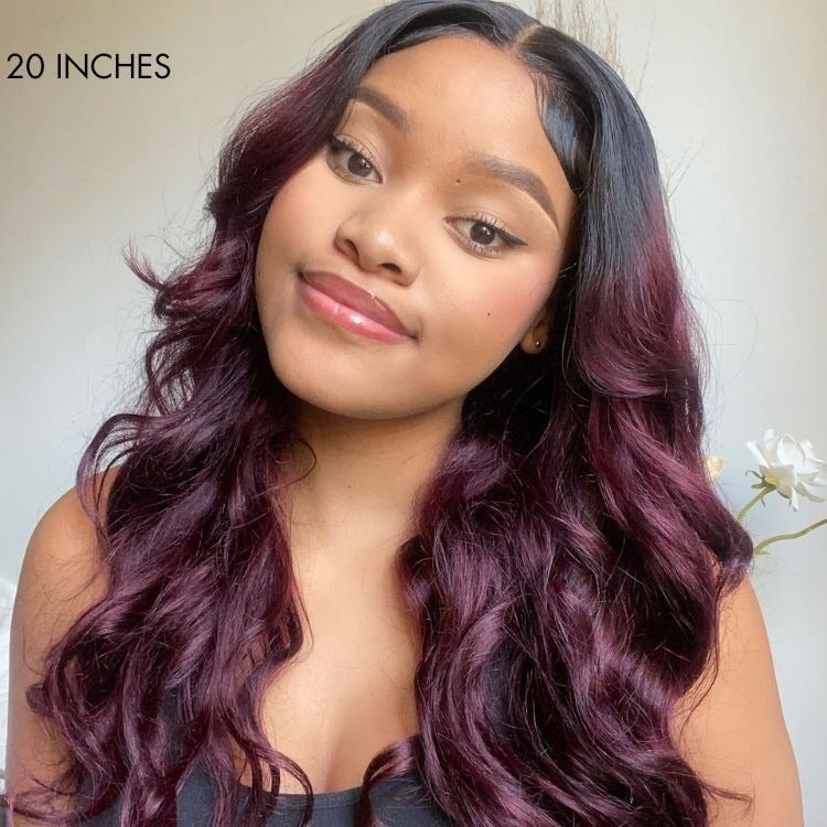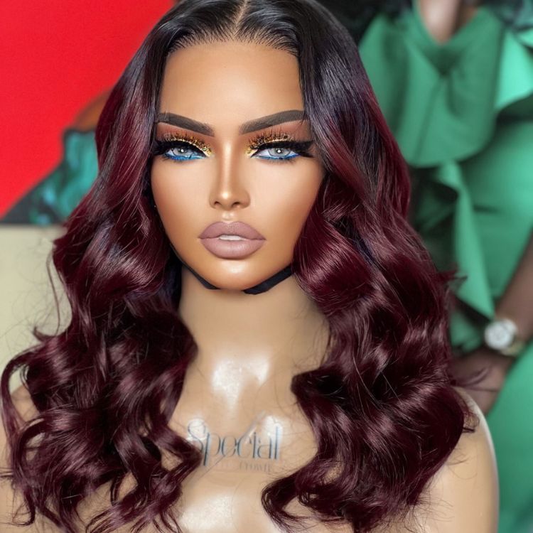 Charming Brown / Ombre 99J Layered Cut Loose Wave 5x5 Closure Lace Glueless Wig 100% Human Hair