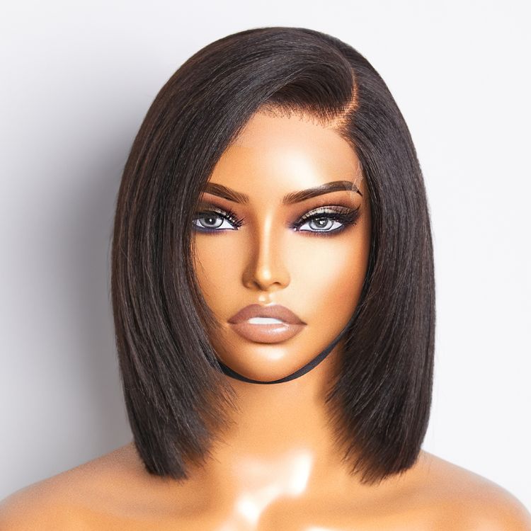 Layered Cut Yaki Straight Left C Part Glueless Minimalist HD Lace Bob Wig Ready to Go