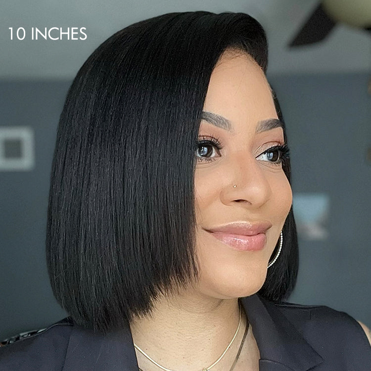 Layered Cut Yaki Straight Left C Part Glueless Minimalist HD Lace Bob Wig Ready to Go - 10 inches / Pre Cut Lace and 1 Second Install / Just the Wig