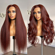 Luvme Hair Realistic Reddish Brown Kinky Straight Glueless 5x5 Closure Lace Wig for All Skin Tones