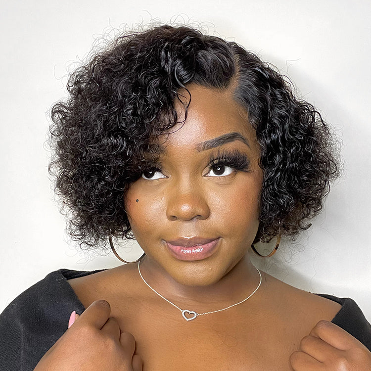 Mature Boss Short Pixie Cut Water Wave Glueless Minimalist HD Lace Wig with Bangs