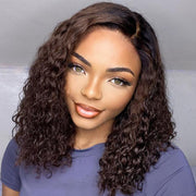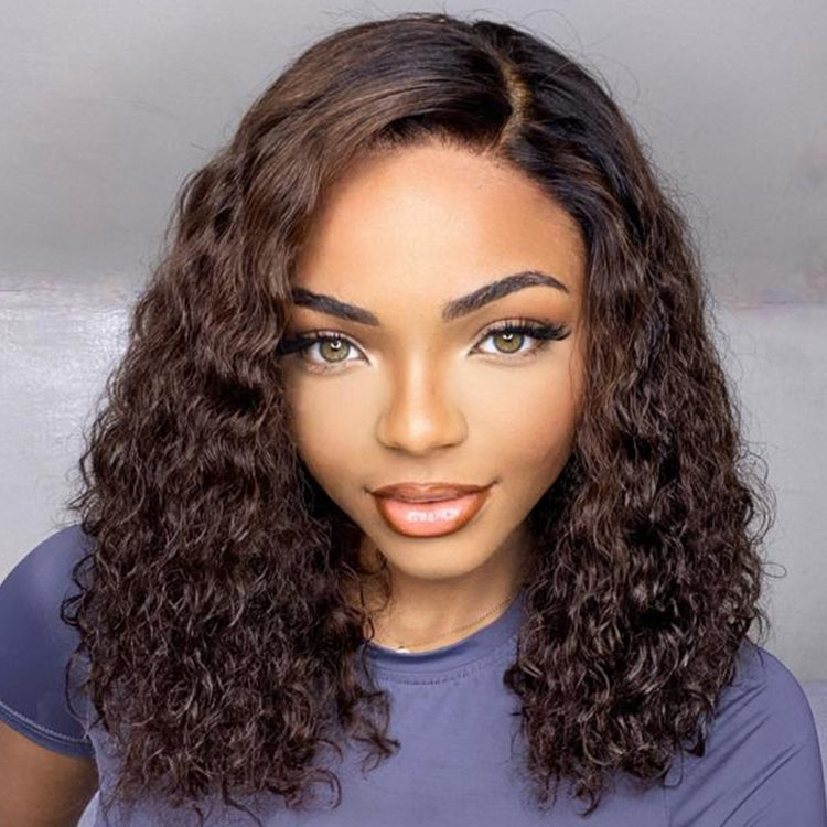 Ombre Brown Funmi Curly 5x5 Closure HD Lace Glueless Side Part Short Wig 100% Human Hair