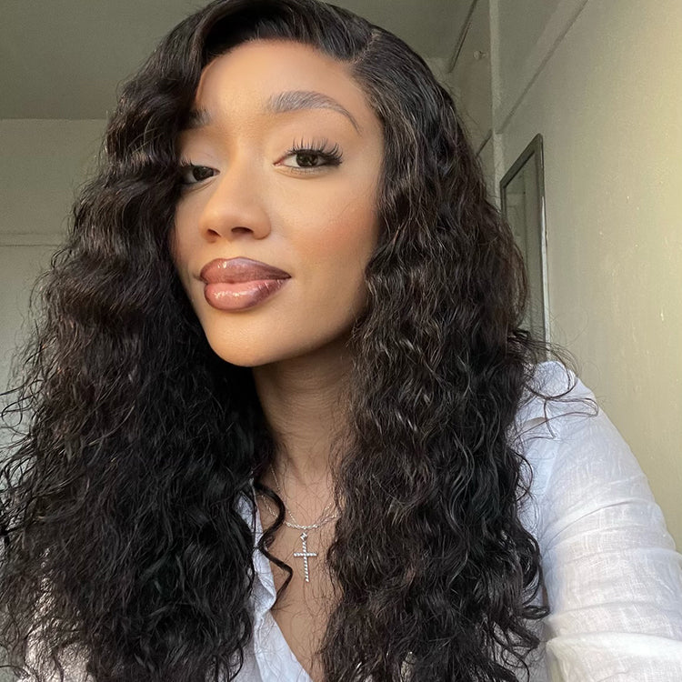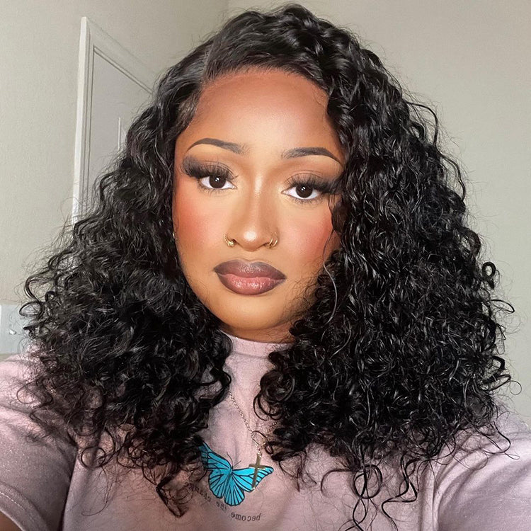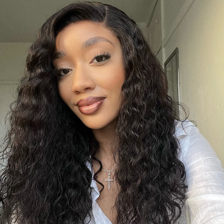 Shoulder-length Pre-plucked Black / Chesnut Brown Glueless Bouncy Curls Minimalist Undetectable HD Lace Long Wig 100% Human Hair